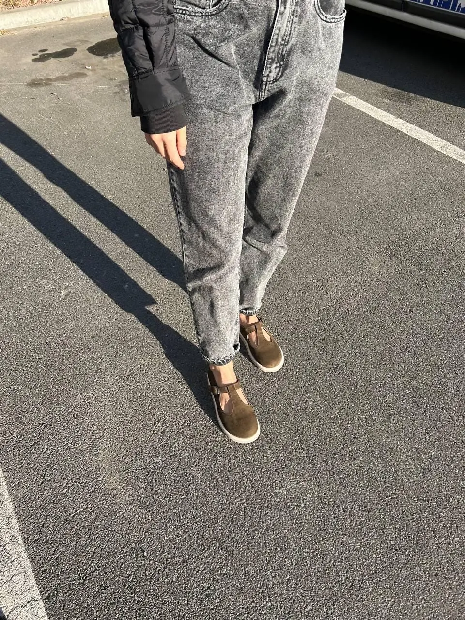 Olive Suede Mary Janes: Wide Toe Box T-strap Flats
